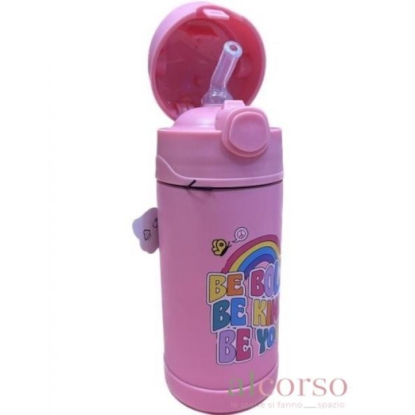 Borraccia termica "be bold be kind be you" con cannuccia. Capacità 300ml. Rosa