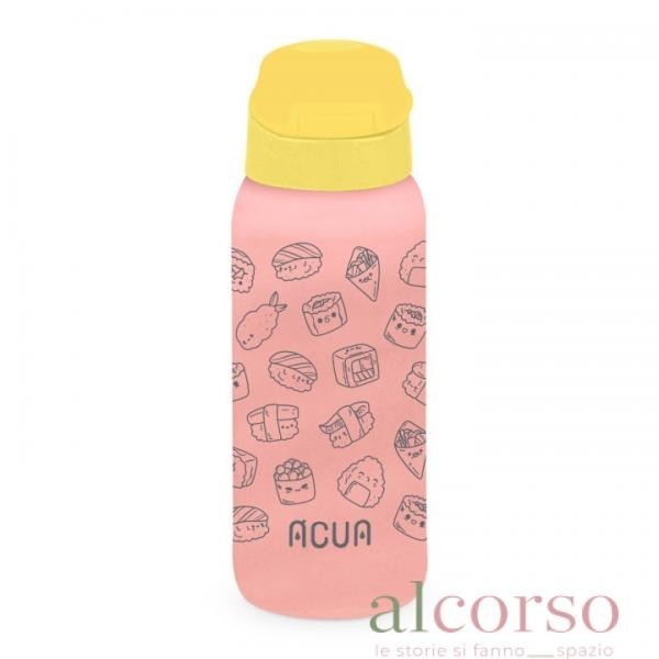 L'avventura inizia con Acua Kids! La borraccia termica bambino con un design accattivante e colorato a tema sushi. Perfetta per insegnare ai più piccoli a bere in tutta autonomia. Grazie al tappo con il pulsante per l'apertura a scatto, già dai primi anni di vita il tuo bambino sarà perfettamente in grado di aprirla e bere in totale libertà, acquisendo sicurezza in sè stesso e nelle sue capacità, ma soprattutto evitando il contatto con germi e batteri! Realizzata in acciaio inox con isolamento sottovuoto e senza BPA, mantiene le bevande fredde fino a 24 ore e calde fino a 12 ore, offrendo unesperienza di gusto inalterato senza contaminazioni. La cannuccia permette di ingerire generose quantità d'acqua. Per garantire una pulizia ottimale, questa bottiglia termica è dotata anche di apertura a vite e di uno scovolino incluso. Con il laccio per il trasporto in dotazione, è la compagna ideale per la scuola, lo sport e il tempo libero. Garantisci al tuo bambino praticità e sicurezza ovunque vada, con Acua Kids ogni sorso sarà un momento di felicità!