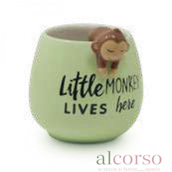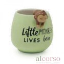 Design: Tazza verde con dettaglio a scimmietta e scritta decorativa