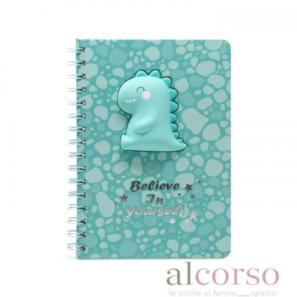 Notebook spiralato a righe - Dinosauro 3d - Verde acqua - Puffy Incanta