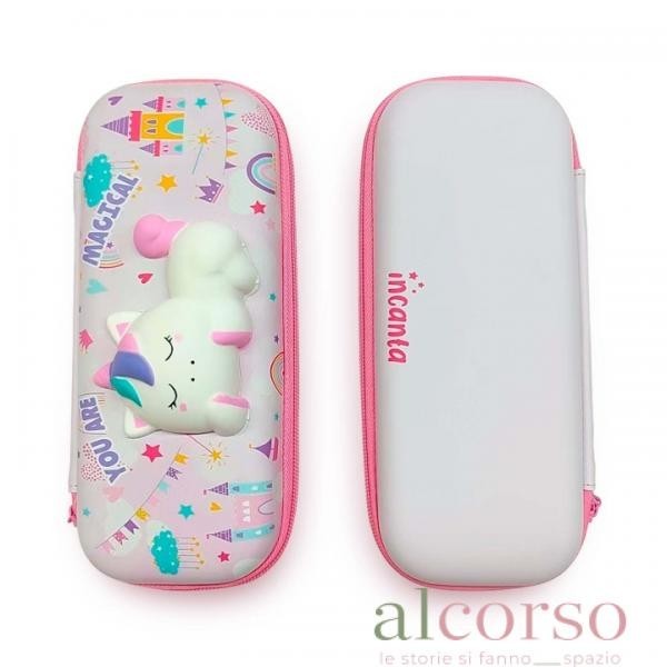 Astuccio rigido - Rosa e lilla con unicorno in rilievo- Squishy Puffy Incanta