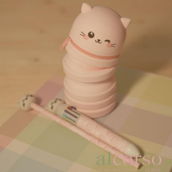 Astuccio Telescopico in Silicone - Rosa con gattino - Flippy - Incanta